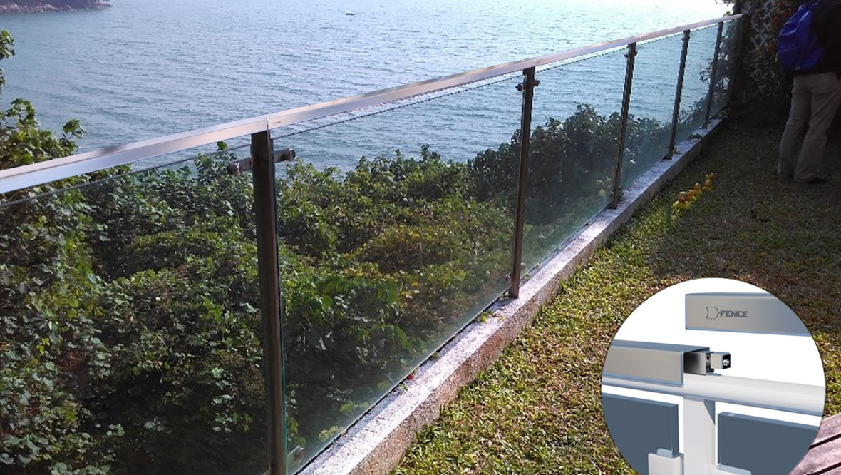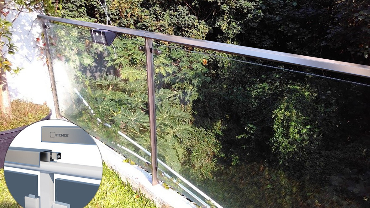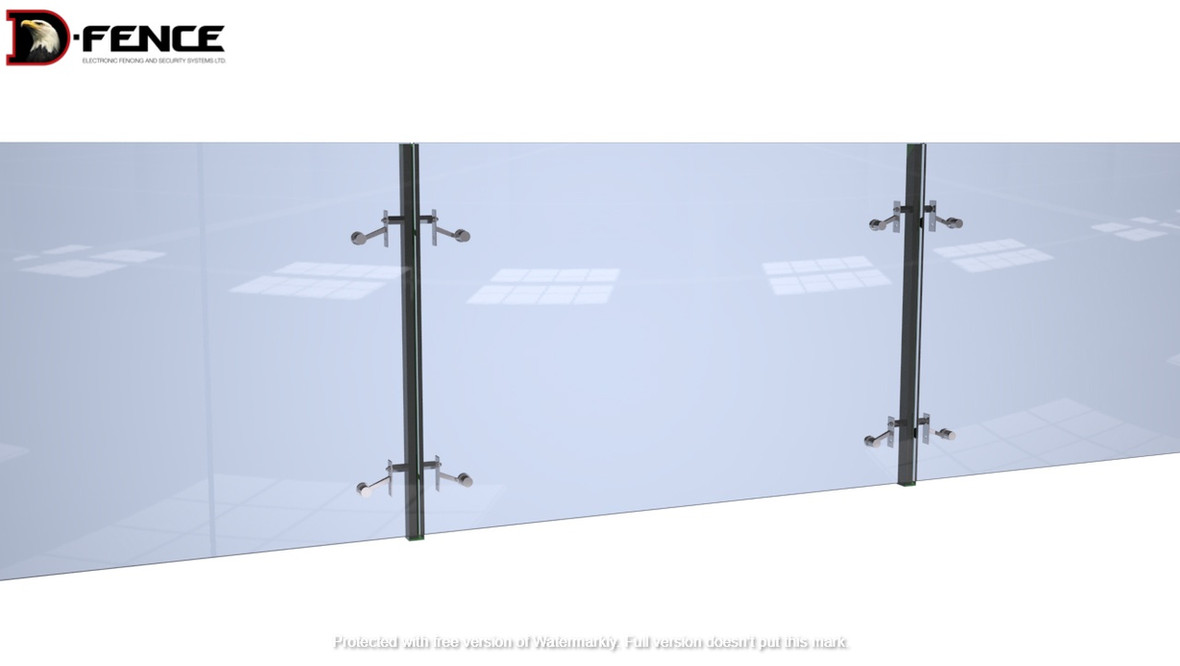 D-Glass este un sistem de securitate nou și inovator care permite integrarea detectării intruziunilor în garduri și ziduri din sticlă. Prin fixarea panourilor de sticlă cu Senzorul de Tensiune D-Fence la stâlpul senzorului sau prin integrarea senzorilor în partea superioară a gardului/zidului de sticlă, gardul devine un Sistem Inteligent de Detectare a Intruziunilor în Perimetru. Orice încercare de a escalada gardul/zidul va genera alarma.