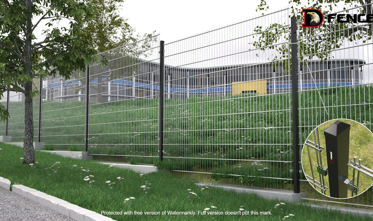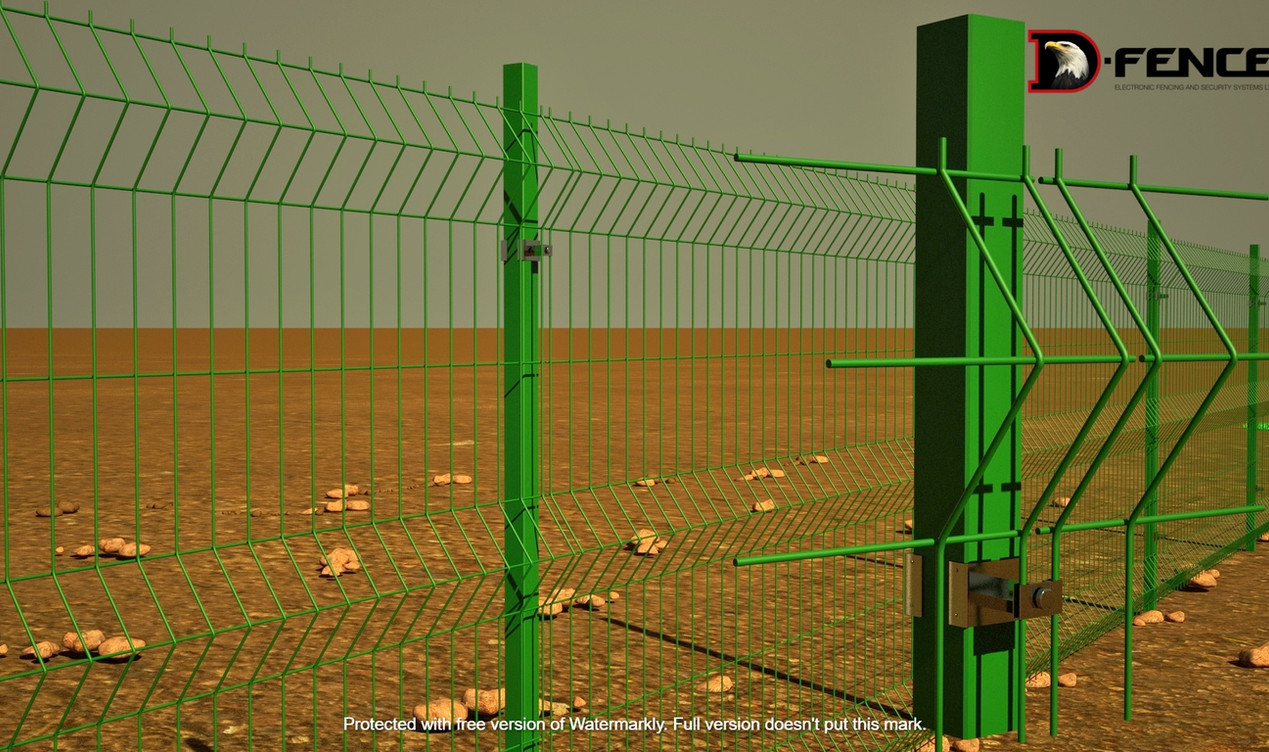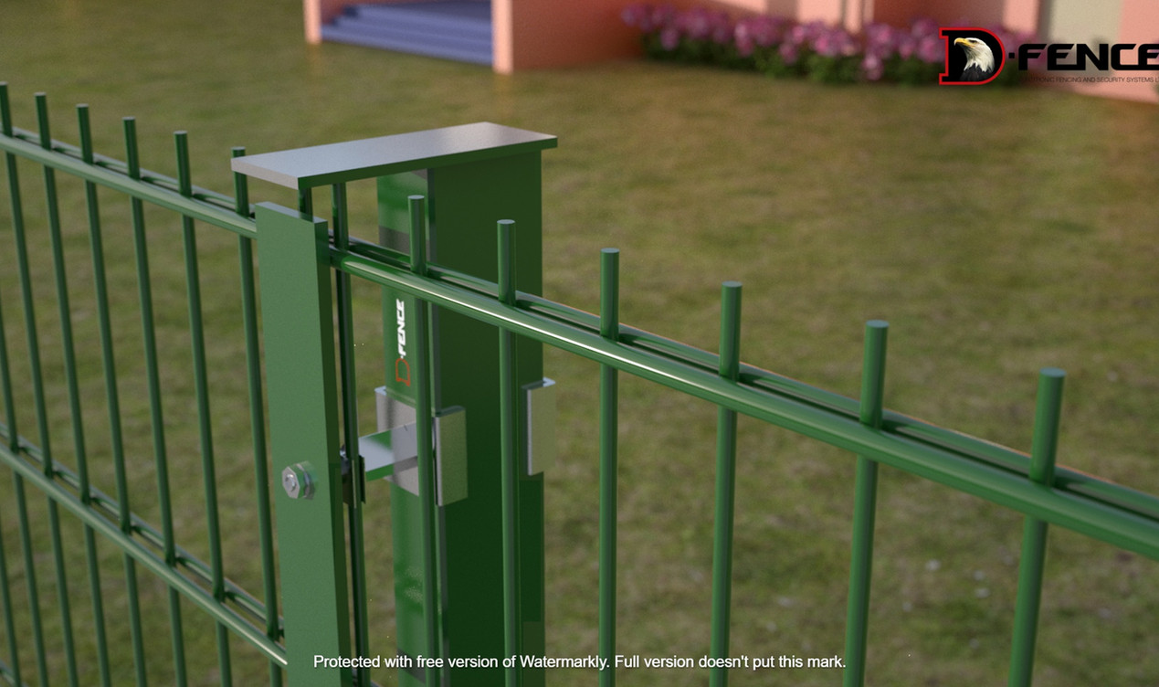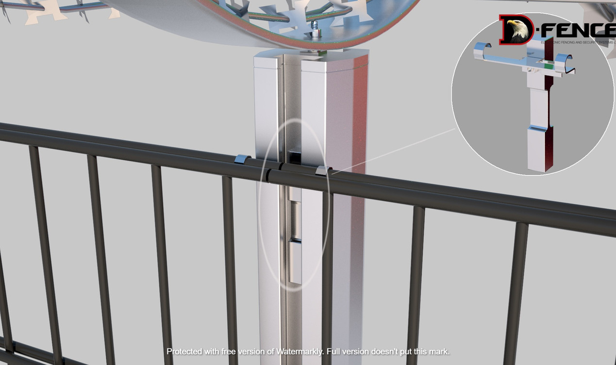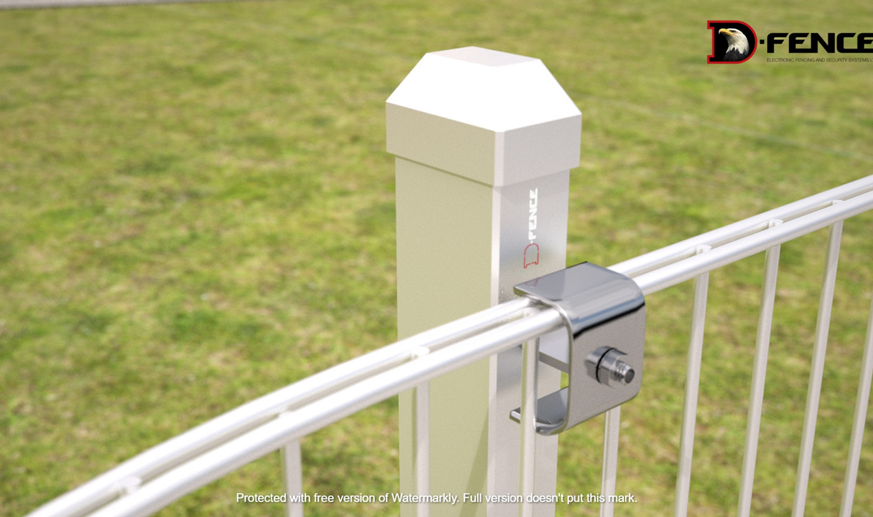 Senzorii de tensiune D-Fence interacționează prin cabluri tensionate cu panourile de gard sudate și cu extensia și le transformă într-un gard indicativ.